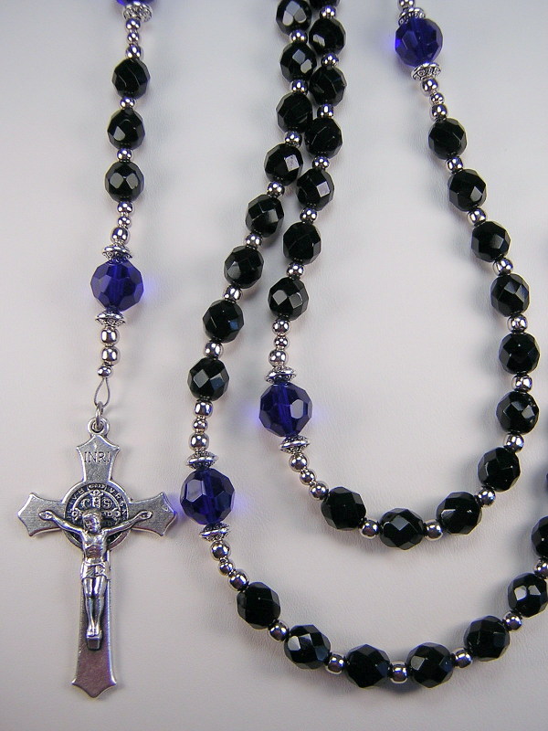 Mens Police Thin Blue Line Rosary Black Cobalt Czech Glass 22 034 Policia Rosario Ebay