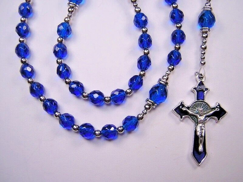Mens Blue 22 034 Rosary Catholic Capri Blue Czech Glass Masculino Catolico Rosario Ebay